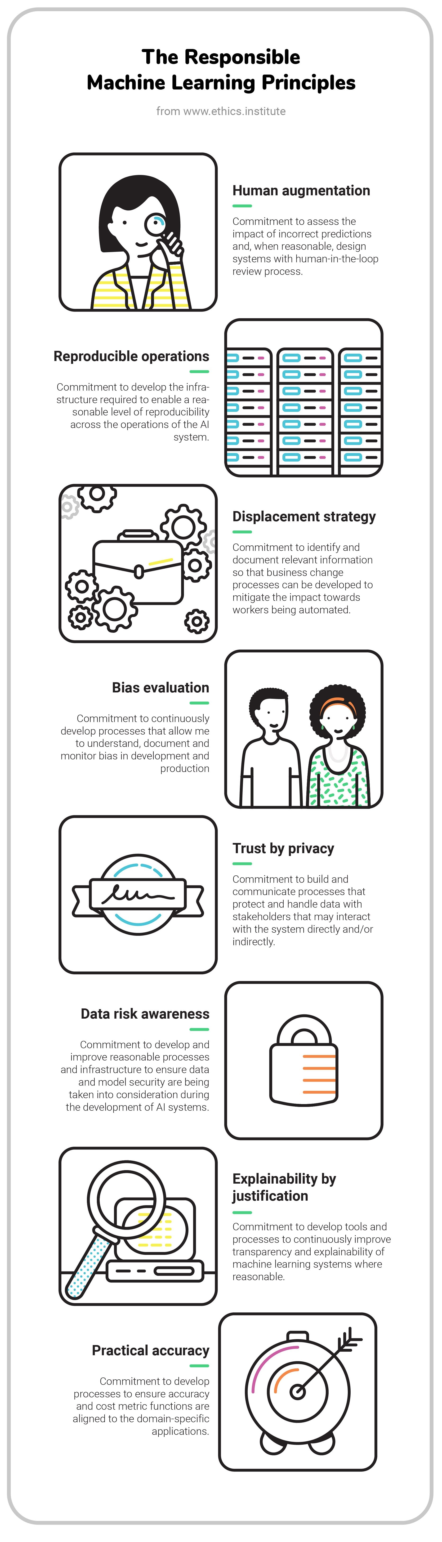 To help start with that, the Institute for Ethical AI and Machine Learning — a UK-based research centre — carries out highly technical research into processes and frameworks that support the responsible development, deployment and operation of machine learning systems. They have formulated eight principles used to soundboard the fairness and ethics of AI systems.