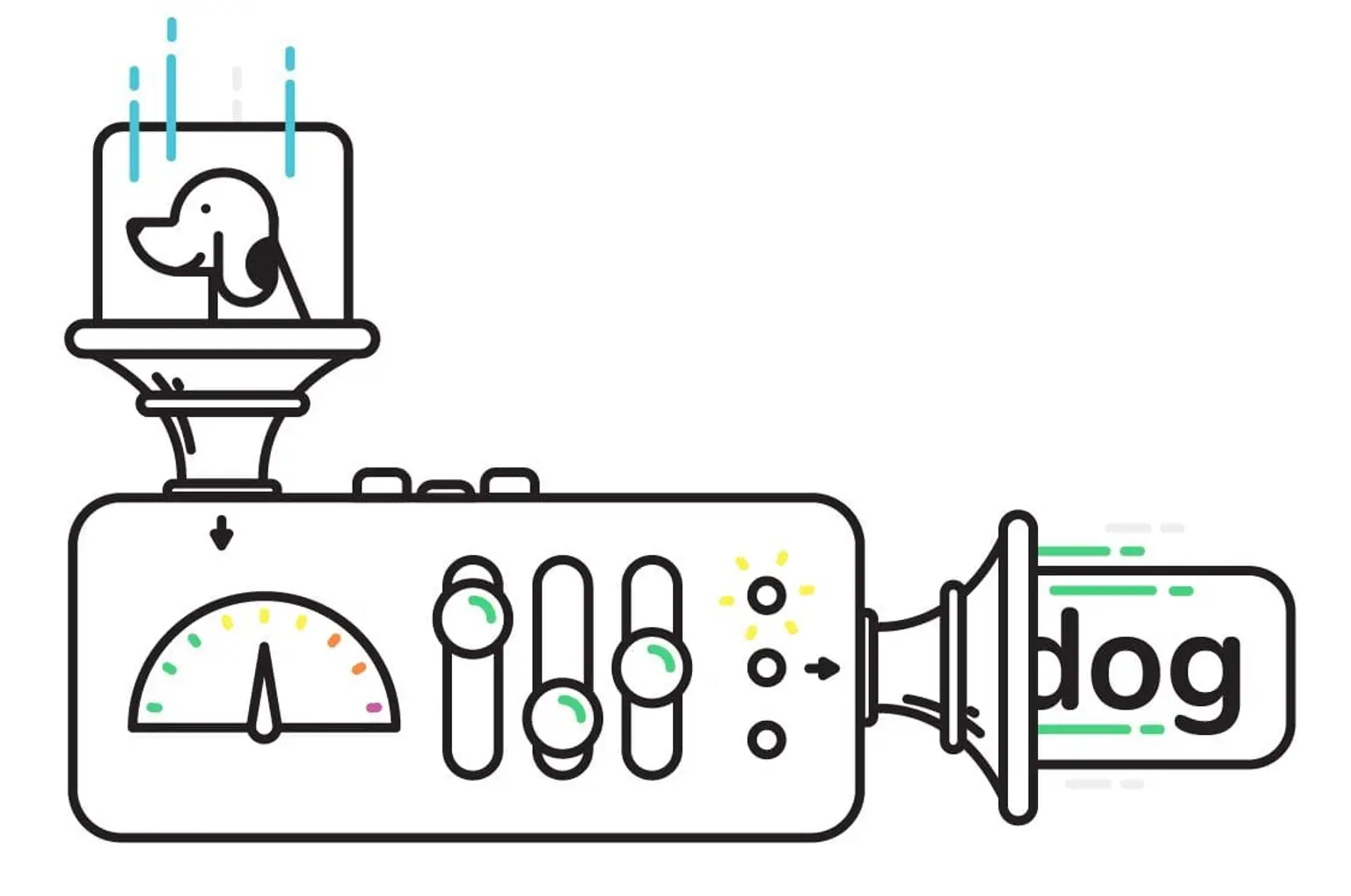 In simpler terms, we’ve created several of these boxes that can perform several different tasks. For some boxes, you can give them a picture of a dog and out will pop the label “dog”. With others, you can speak to them and they'll spit out the transcription of what was said. Other boxes can take the same speech as input, but then produce the translation in almost any language of what was said.