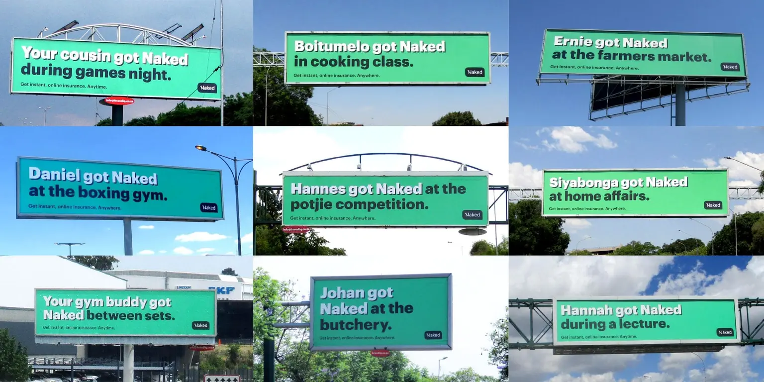 We launched with over 150 unique billboards across the country, each featuring a place or moment where someone “Got Naked” (a.k.a. bought insurance via the Naked app). From Tamryn got Naked at the hairdresser to Thabo got Naked at the traffic light, the goal was simple: