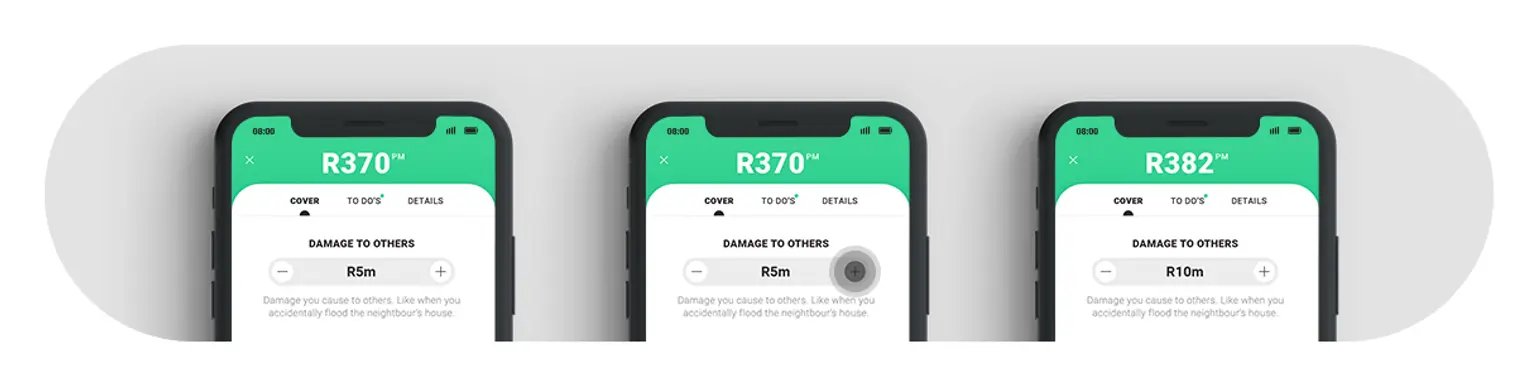At Naked our average policyholder goes for R5-million in personal liability cover – the minimum is R2-million and the max is R10-million. It sounds like a lot of money until something does go wrong and you are held liable. You can easily see how much your premium changes depending on what liability cover you want on our app.