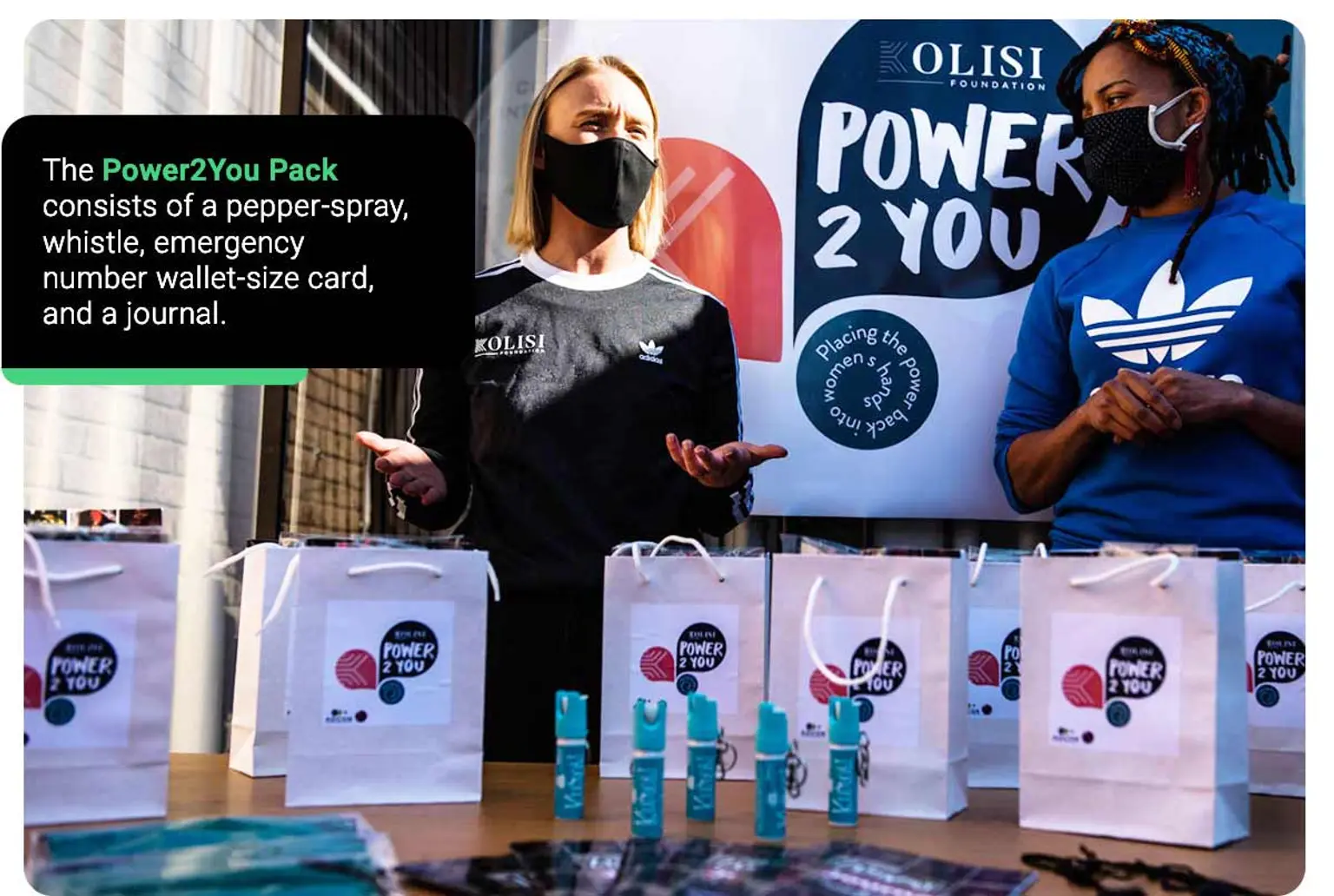 With the help of their partner organisations, the Kolisi Foundation launched our Power2You Packs Project in August 2020. The Power2You Pack consists of a pepper-spray, whistle, emergency number wallet-sized card, and a journal with resourceful information about seeking justice, legal help, and healing. The intention of the Power2You pack is to support victims of gender-based violence.