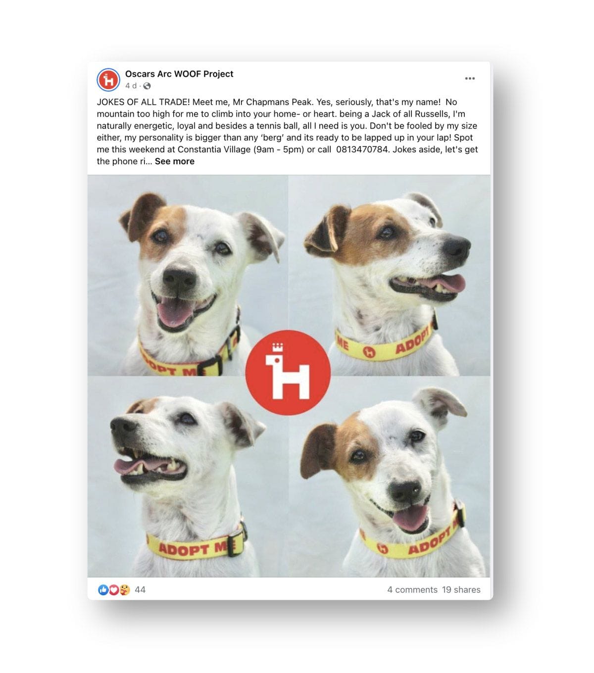 As part of their marketing strategy to get dogs adopted, Oscars Arc allows the public to donate money and name a dog. Once they receive their new (often quirky) name, Oscars Arc get typing and creates adorable profiles for these dogs.