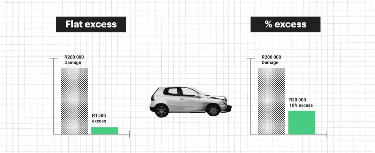 Some insurers have a percentage excess that is proportionate to your claim. For example, your insurer might say that you have a 10% of claim excess. So, if you have a claim of R100,000 you will contribute 10% of R100,000 (i.e. R10,000) and your insurer will pay the remaining R90,000.