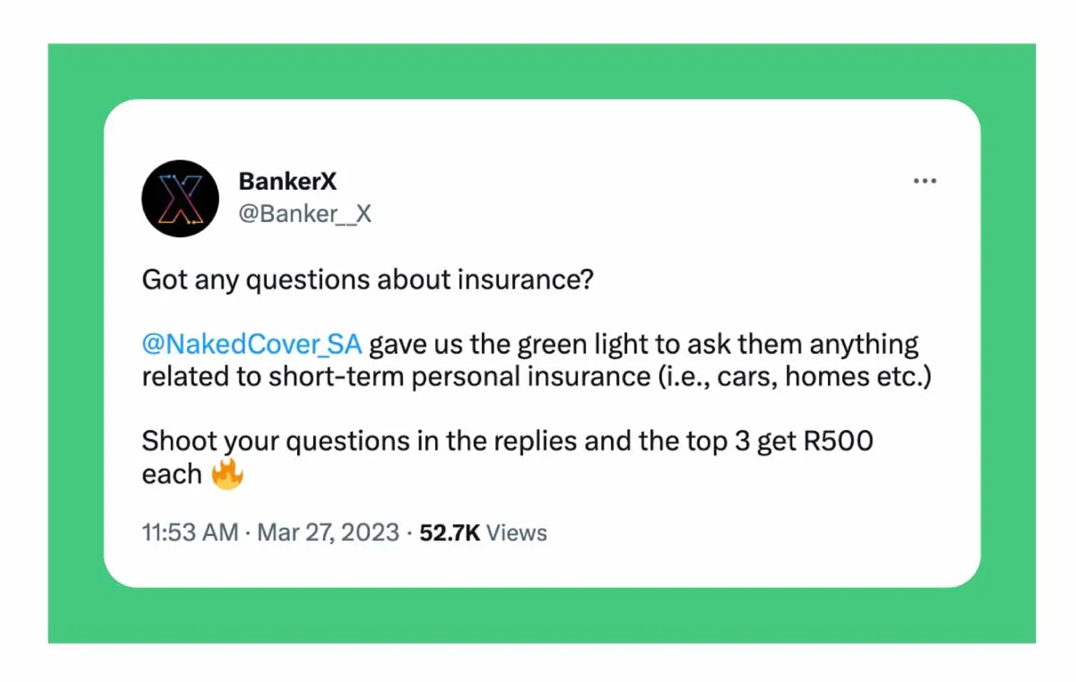 We teamed up with BankerX and asked the people of South Africa what they really wanted to know about insurance. We got loads of great questions - seriously, you guys didn't hold back! We did our best to answer as many as we could on Twitter, but we noticed that there were a few common questions that kept coming up.