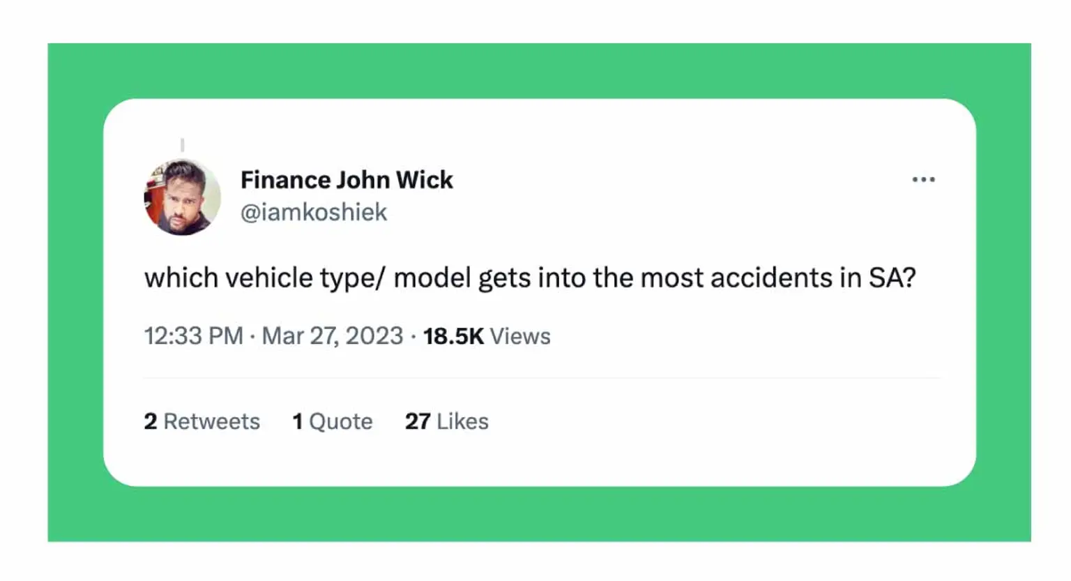 Q: The million-dollar question… which is the most risky car to drive in South Africa?